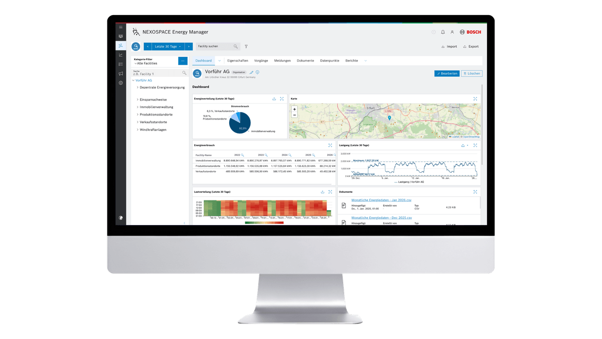 Der NEXOSPACE Energy Manager bietet eine modulare "Software as a Service"-Lösung, die Energiedaten verschiedener Quellen bündelt, normalisiert (z.B. Witterungsbereinigung) und visualisiert.